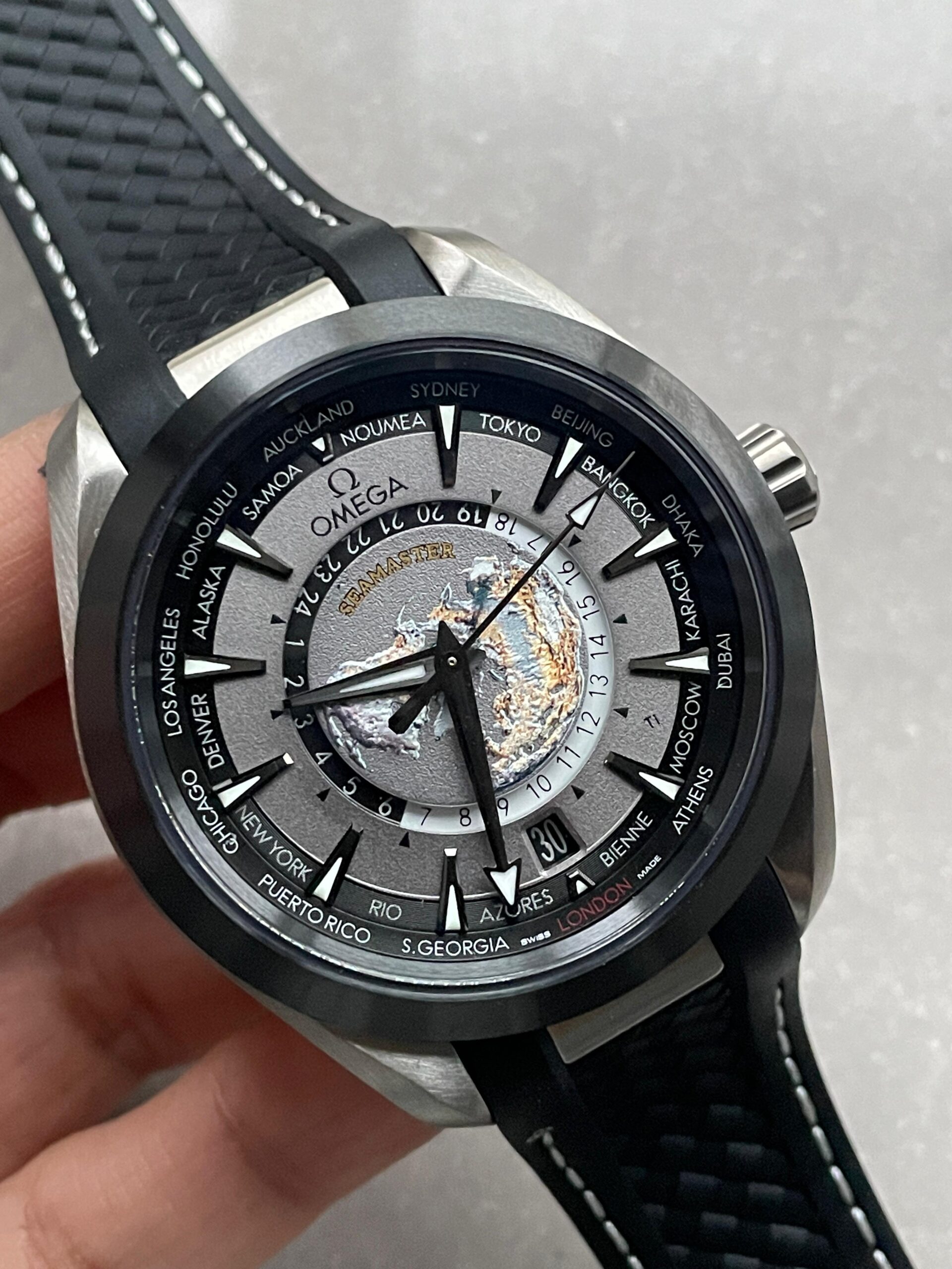 Omega Seamaster Aqua Terra GMT Titanium Worldtimer 43mm Ti Black Dial on Rubber Strap VSF A8938