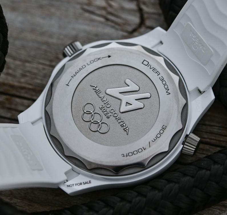 For the 32nd time in its (long) history and since 1932, Omega will be the Official Timekeeper of the Olympics. Indeed, the 2026 Olympic Winter Games will be held from February 6th to 22nd in Milano Cortina, Italy, and the Swiss fake watches brand will record all 116 events across 16 sporting disciplines. To celebrate its participation in Milano Cortina 2026, Omega has already released several special-edition watches, such as this Speedmaster 38mm and the handsome Seamaster 37mm with “dog leg” lugs. Now, as the Olympic Winter Games are set to begin in just over two weeks, Omega celebrates once again by releasing a dedicated Seamaster Diver 300M timepiece in white ceramic.